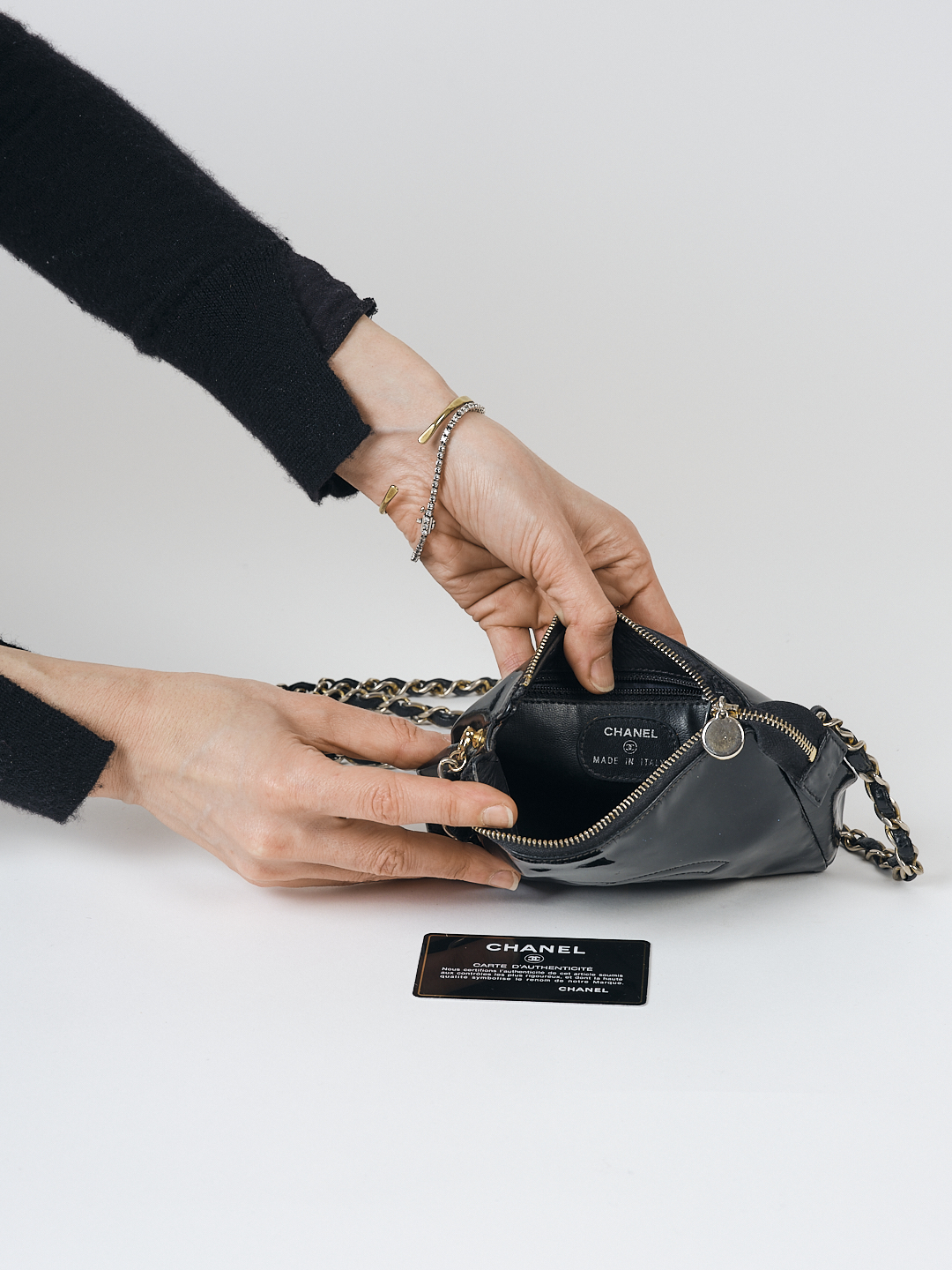 Kleines Chanel Lack-Täschen mit Logo, mit Authentifikationsnummer & Authentifikationskarte